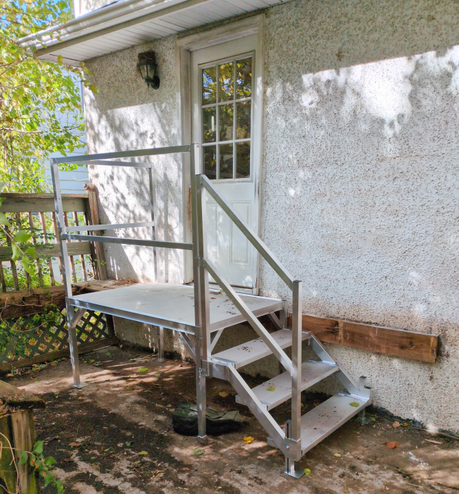There’s still most of the opposite side that we left in one awkward piece, leaning out of the way, and a lot of mostly-rotten scrap wood with nails in it that we will have to dispose of. The entire set of steps on its stringers came out in one piece, and we may be able to use that to replace the rotting railroad ties that lead up from the patio to the back yard level. But we accomplished the main goal: making it safe to step outside the back door. It was a lot of work, which we had been perfectly willing to pay someone else to do if they had showed up, but we exchanged being very sore (my spouse had a bad RA flareup and my back has lodged a long list of complaints) for saving a chunk of money.